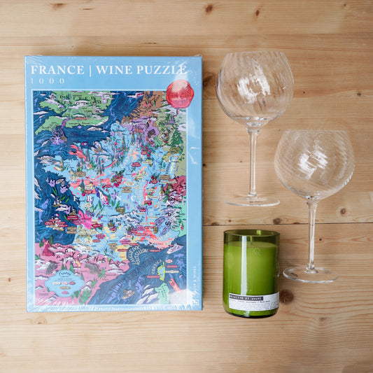 Ge bort en kväll för två att koppla av runt ett pussel som tar dem till Frankrikes solvarma vingårdar, cykelvänliga grusvägar och kustens friska droppar.